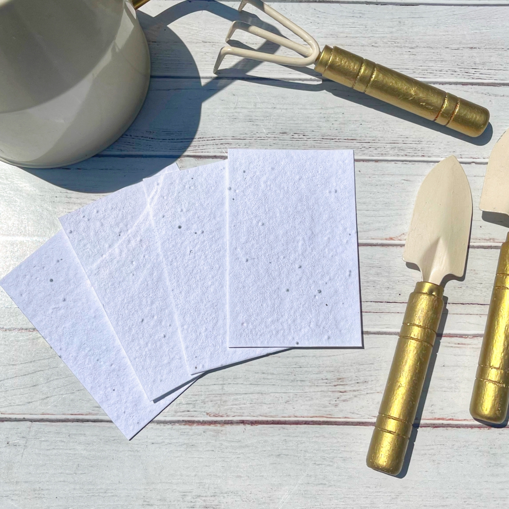 Papir koji cvate je sadni, ekološki i biorazgradivi ručno izrađeni papir izrađen od recikliranog pamuka integriranog s posebnom mješavinom sjemenki cvijeća.