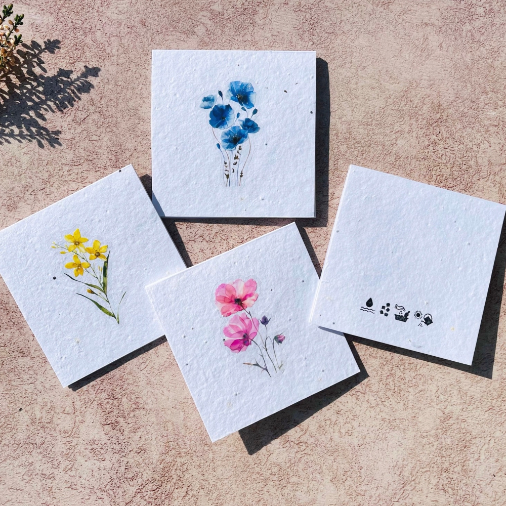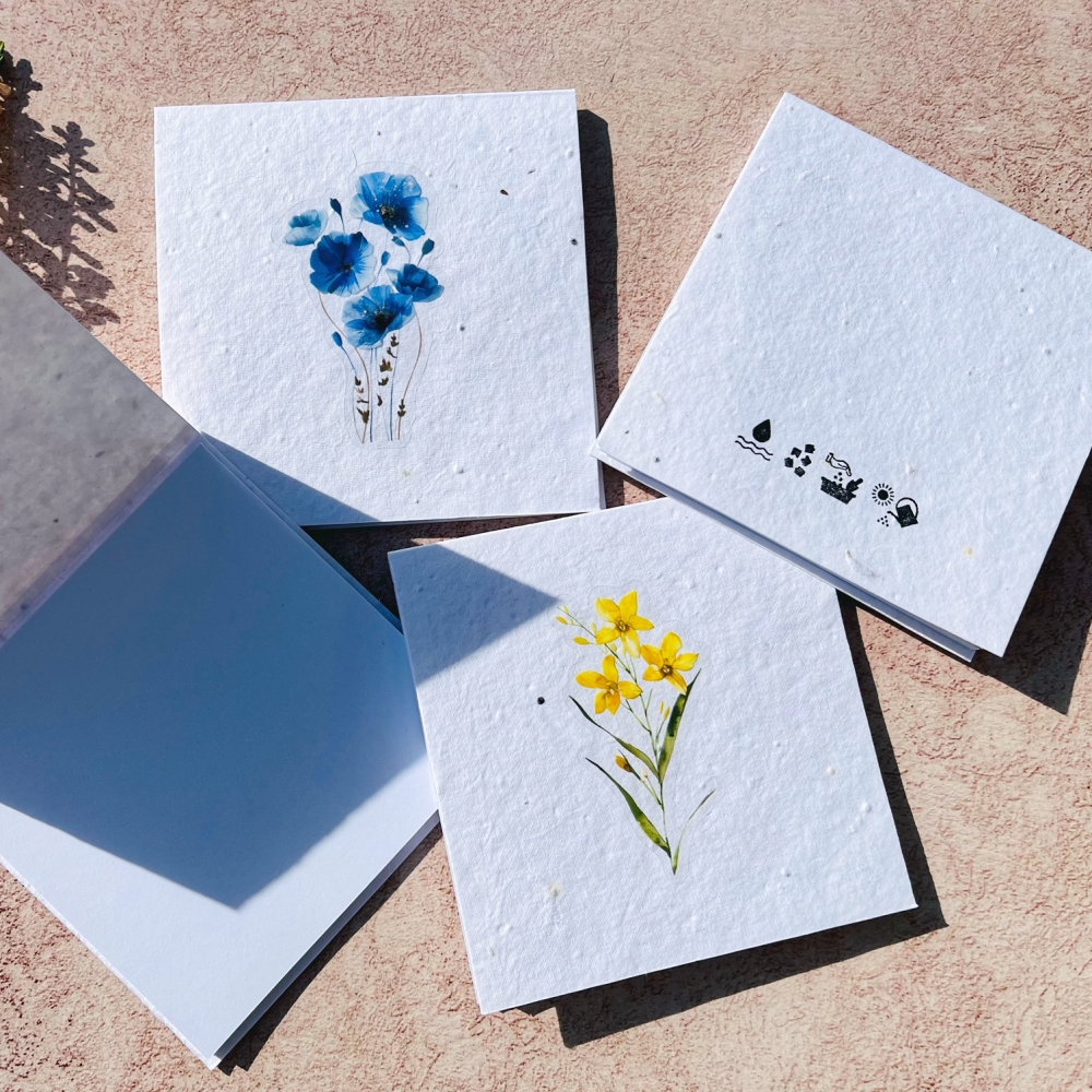Papir koji cvate je sadni, ekološki i biorazgradivi ručno izrađeni papir izrađen od recikliranog pamuka integriranog s posebnom mješavinom sjemenki cvijeća.