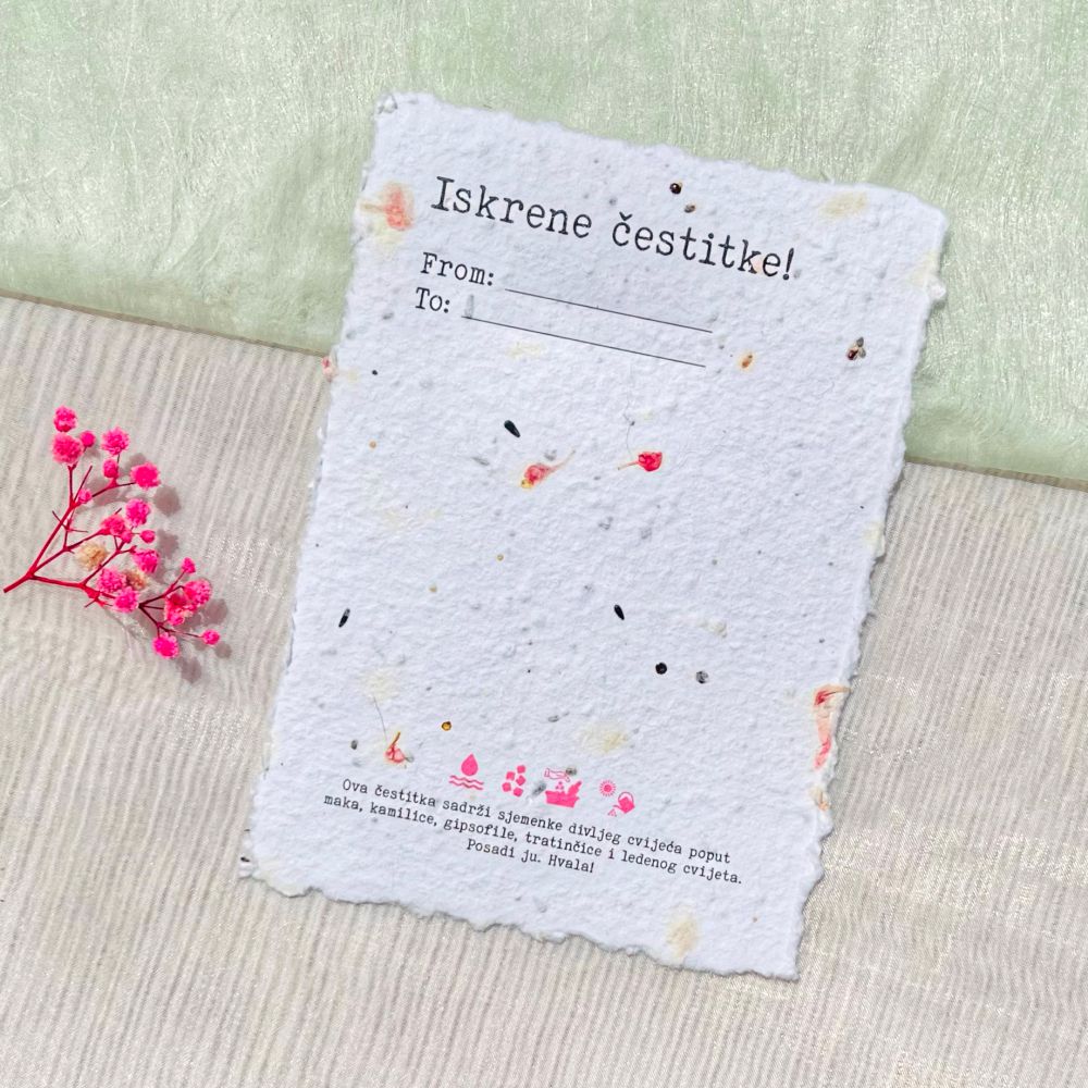 Papir koji cvate je sadni, ekološki i biorazgradivi ručno izrađeni papir izrađen od recikliranog pamuka integriranog s posebnom mješavinom sjemenki cvijeća.